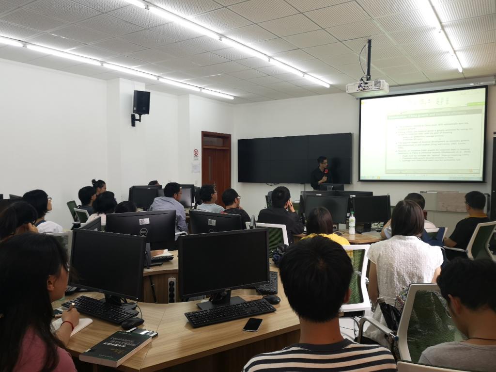 梁双陆院长介绍了姚丰教授的研究领域和学术经历,姚丰教授是西弗吉尼亚大学副教授、《Economic Inquiry》副主编,香港中文大学访问学者。2004年获俄勒冈州立大学经济学博士,研究方向为计量经济学,研究课题涉及前沿生产函数估计,非参数内生变量,金融在险值及预期风险值的非参极值估计,回归省略变量的检验等。学术成果丰厚,2015年获教育部青年基金项目,在《Journal of Econometrics》、《Journal of Quantitative Economic》、《Econometric Reviews》等期刊上发表论文数十余篇。