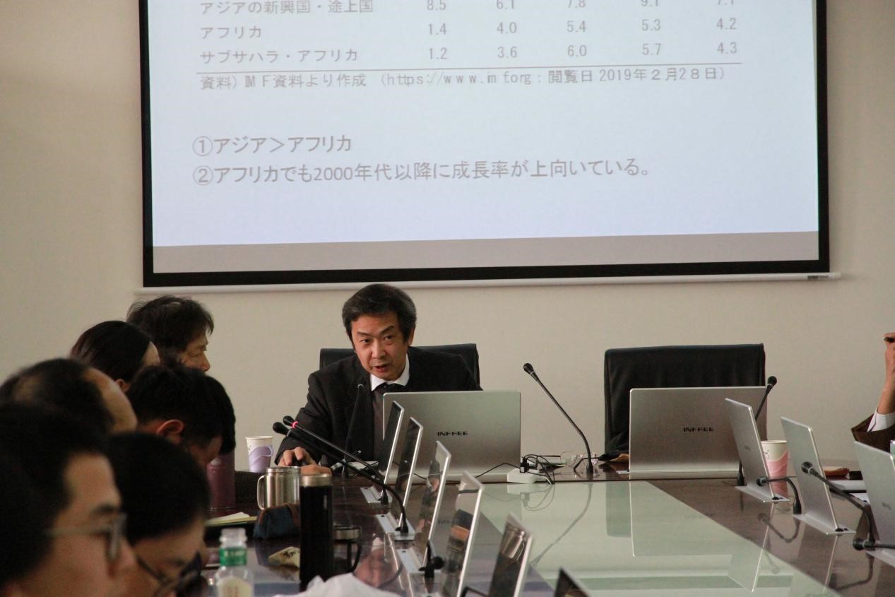 山崎亮一教授的讲座从农业经济研究方法、农业对经济发展贡献的文献研究、撒哈拉以南非洲与东南亚农业经济比较研究、研究结论四个方面展开。山崎教授首先介绍了以农村现地调查研究为主的研究方法,即选取不同地区的农户进行跟踪调查,一般一个村落40户左右。接下来山崎教授从农村购买、资金提供、劳动力三个方面阐述了国外学者在农业对经济发展贡献方面的观点总结,进一步提出自己的看法,认为亚洲与非洲劳动力成本差异的主要原因是工人的形成,而非以往研究的劳动生产力的差异。