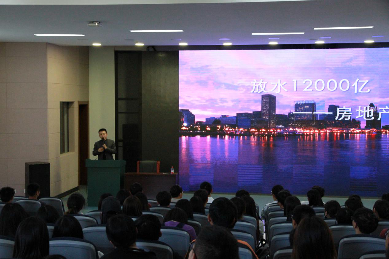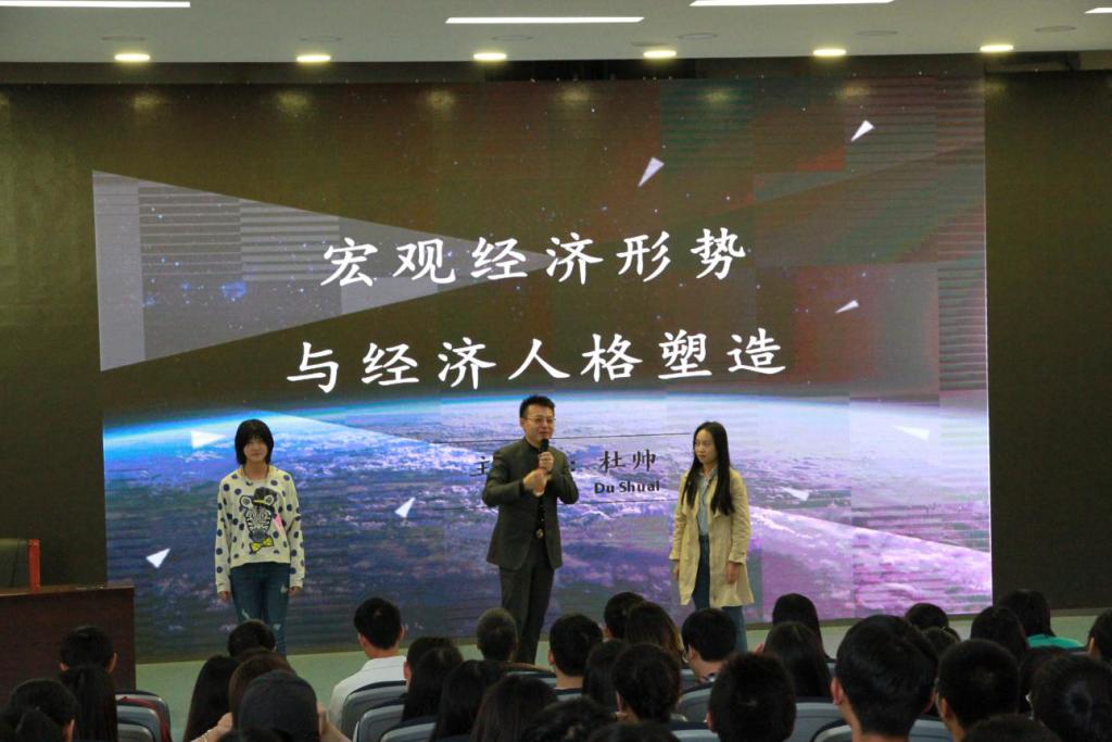 2019年4月12日星期五下午两点,在我校学生会堂134报告厅,美林银行最大华人持股人、团中央创新创业导师、北京大学、中国社科院客座教授、北京广播电视台《杜帅开说》创始人杜帅老师应邀到allwincity万象城官方网站,为我们带来了题为“宏观经济形势和经济人格塑造”的讲座,杜老师幽默风趣又极富思想性与运用性的报告吸引了allwincity万象城官方网站各年级学生积极参与。