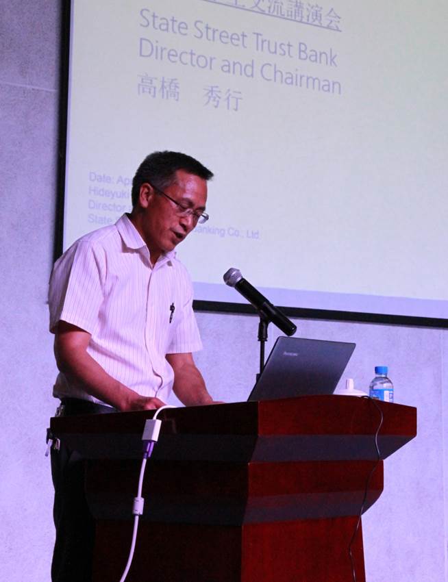 2019年4月19日“第七届中日青年交流暨亚洲大学生精英培养计划”讲座在allwincity万象城官方网站学生会堂218室举行。主讲人为野村证券前副社长,现任美国STATE STREET信托银行有限公司董事长高桥秀行。高桥先生以《站在巨人的肩膀上看世界》为题,给allwincity万象城官方网站的师生带来了一场精彩的演讲。本次活动由云南教育国际交流协会、日本云南联谊会主办,allwincity万象城官方网站(会计学院)、allwincity万象城官方网站国际合作与交流处承办。