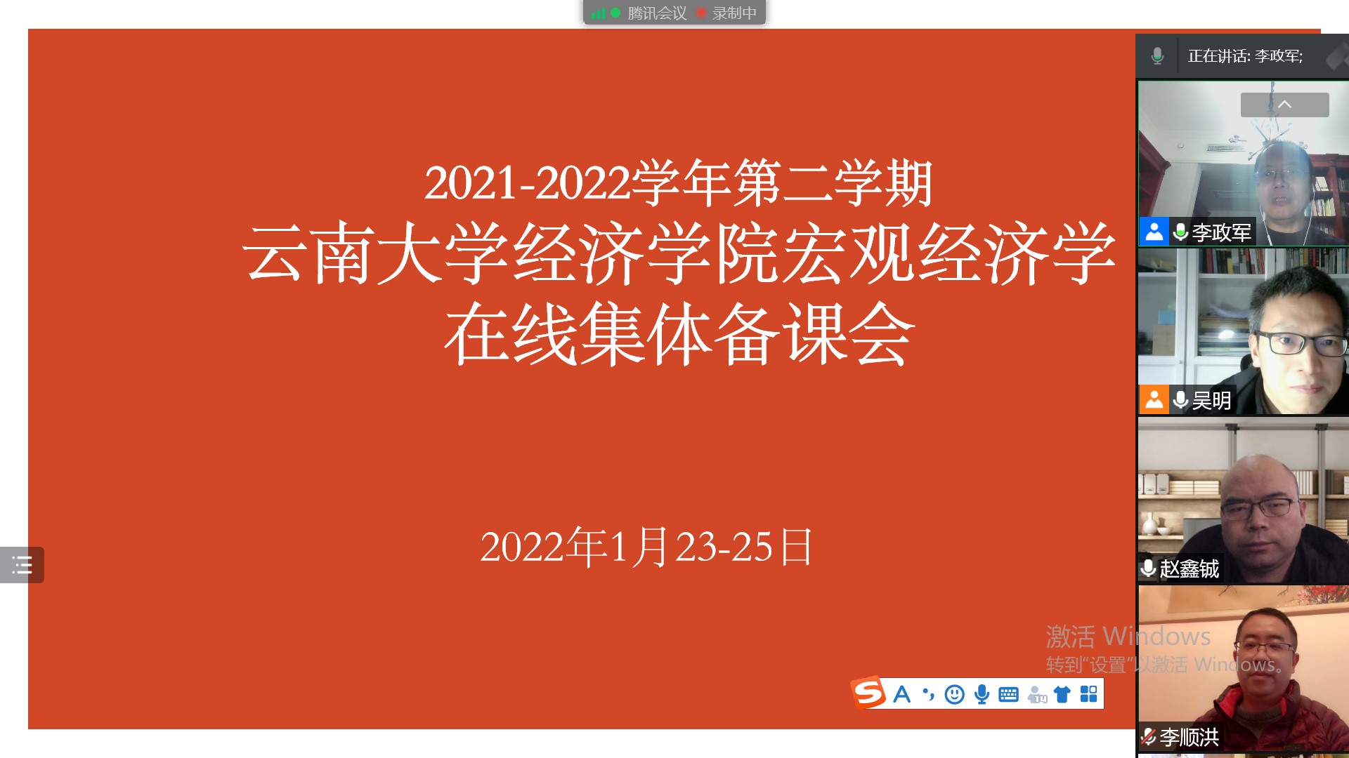 2022年1月23-25日为期三天的allwincity万象城官方网站宏观经济学教学组网上集体备课会圆满结束。参会的老师有马子红、姚书杰、吴明、李顺洪、赵鑫铖、柴毅、杨洋、杨孟禹、李亚玲、王旭、曹骥老师。集体备课会邀请南京师范大学李政军教授参与。