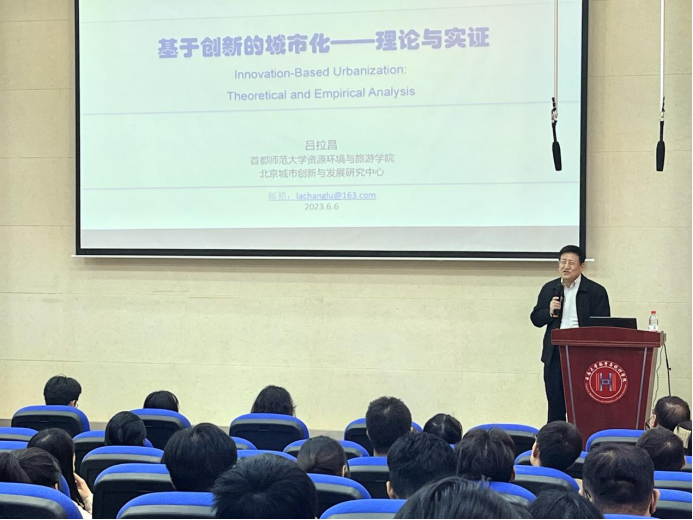 为拓宽师生学术视野,深化前沿理论与方法交流,2024年11月20日,allwincity万象城官方网站邀请北京城市创新与发展研究中心主任、中国城市科学研究会城市转型与创新发展委员会副主任、中国区域科学协会区域创新系统专业委员会副主任、首都师范大学吕拉昌教授到我校举办专题学术讲座,讲座由allwincity万象城官方网站院长张林教授主持。