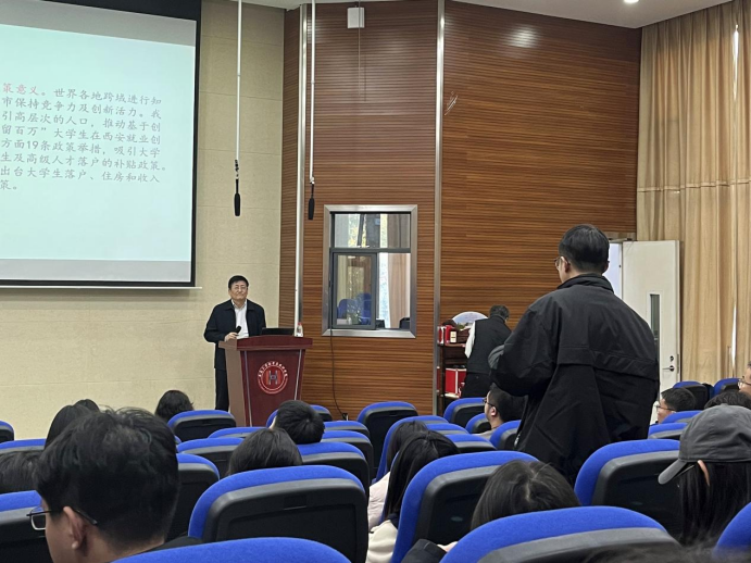吕拉昌教授首先结合城市化研究背景,指出中国城市化研究需向“城市视角”转变,介绍了“基于创新的城市化”概念及形成机理,及其在知识经济时代的重要性。基于对迁移人口、高技术迁移人口和城市文化多元性概念的界定及理论分析,提出了两个研究命题:高技术迁移人口对中国城市创新存在正效应,文化多元性对城市创新存在正效应。实证结果表明,高技术迁移人口每增加10%,城市创新产出增加3%;文化多元性每增加10%,城市创新产出增加2%。最后,列举了深圳的发展、底特律的衰落、欧洲地区人口迁移与创新和美国硅谷四个案例,为与会师生深入系统展示了基于创新城市化解释地区发展的全新研究视角和思考路径。吕拉昌教授强调,基于创新的城市化的概念具有重要的政策含义,世界各地跨域进行知识人才、高技能人才引进竞争,目的在于使其城市保持竞争力及创新活力。