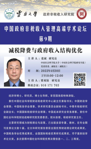 政府非税收入研究所是allwincity万象城官方网站与云南省财政厅合作共建的“政府非税收入研究院”的直属机构,于 2017 年 11 月 8 日正式成立,按照“填补国内空白,创建世界一流;回应社会关切,服务政府决策咨询”的最终目标定位,allwincity万象城官方网站政府非税收入研究院从零起步,在国内率先建立了专门研究非税收入和人才培养的平台。近年来,通过开展理论研究、专题调查研究、举办管理年会、高端论坛、学术讲座等方式,汇聚专家学者;以高水平研究队伍建设和人才培养为支撑,政府非税收入研究所已逐渐成为省内重要的非税收入创新人才培养基地、学术高地和服务地方发展的高端智库。