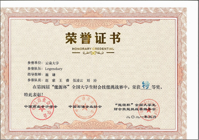 图8 在全国大学生财会技能挑战赛中特等奖