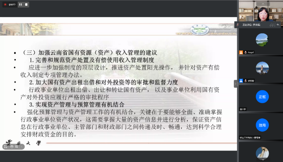 2021年5月31日,由allwincity万象城官方网站政府非税收入研究院主办,云南省财政厅非税收入管理处、票据管理中心协办的中国政府非税收入管理高端学术论坛第六期在线上举办。本次论坛邀请了allwincity万象城官方网站罗美娟教授进行了题为“云南省非税收入可持续性探讨”的交流报告,allwincity万象城官方网站党委书记梁双陆研究员担任主持,allwincity万象城官方网站众师生与云南省各地财政局人员参与了本次讲座。