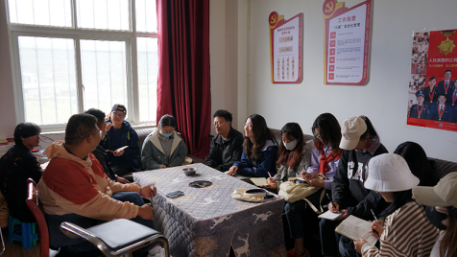 图为调研组在红坡村村委会了解社区反哺和生态补偿情况