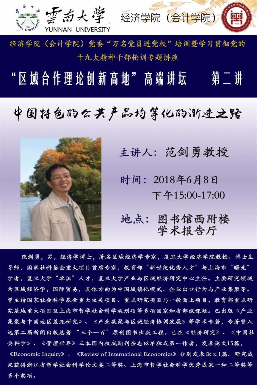 【论坛通知】高端论坛第二讲 主讲人:复旦大学范剑勇教授
