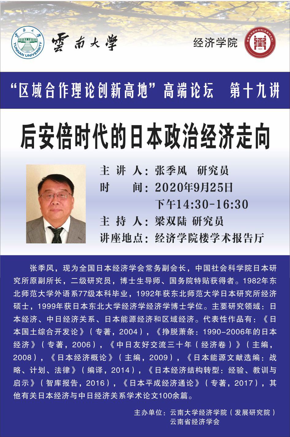 上一条:区域合作理论创新高地高端论坛第十九讲:全国日本经济学会常务副会长张季风——后安倍时代的日本政治经济走向