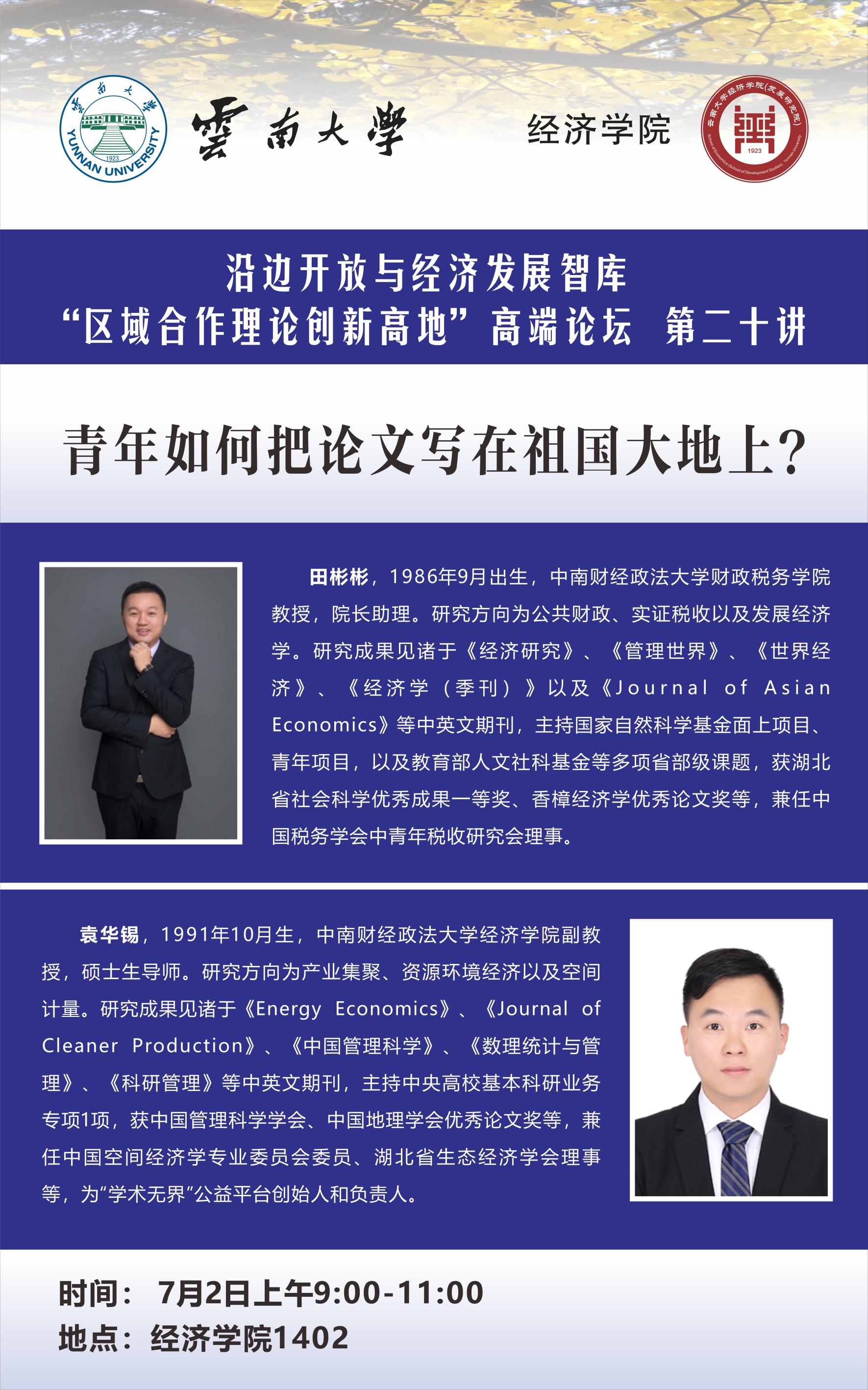 【论坛通知】高端论坛第二十讲 主讲人:中南财经政法大学财政税务学院教授田彬彬,中南财经政法大学allwincity万象城官方网站副教授副教授袁华锡