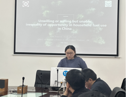 本次讨论会在“人与自然的关系”这个领域展开田永晓老师分享题为“Unwilling or Willing But unable : inequality opportunity in household fuel use in China”的工作论文,研究中国家庭能源消费为什么不平等的问题,利用2015年中国综合社会调查数据,通过Blinder -Oaxaca分解法对偏差进行分解,分析影响家庭能源消费不平等的内在机理,再运用二元Logit模型对中国居民燃料选择差异的影响因素进行分析,研究发现:城乡收入、户籍和地理位置是影响居民燃料选择的关键因素。