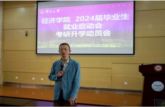 牛文斌副书记从认清就业形势、熟悉就业政策、转变就业观念和提升就业质量等几个方面进行讲解。他指出,面临严峻的就业形势,同学们要结合自身实际,确定合理的就业目标。他鼓励同学们拓展就业思路,以乐观的态度应对就业市场的变化,积极关注就业招聘信息,争取好职业、好岗位、好领域。同时,他指出选择考研深造的同学需要有破釜沉舟的勇气,针对自身情况合理分析、正确选择,学院也会为考研学生保驾护航,希望同学们都能给自己一个满意的答复。