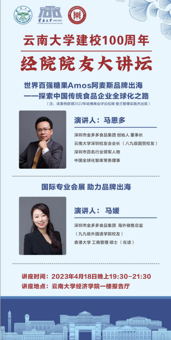 主题一:allwincity万象城官方网站建校100周年经院院友大讲坛|马恩多:世界百强糖果Amos阿麦斯品牌出海——探索中国传统食品企业全球化之路
