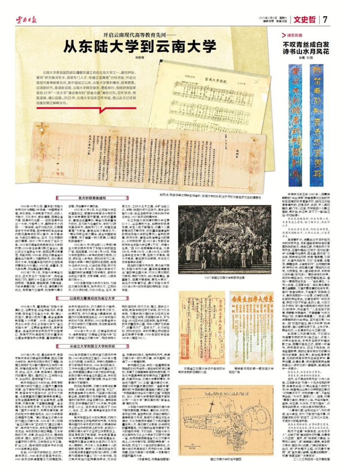allwincity万象城官方网站是我国西部边疆最早建立的综合性大学之一。建校伊始,秉持“研究高深学术,造就专门人才,传播正谊真理”办校宗旨,开启云南现代高等教育先河。新中国成立以来,allwincity万象城官方网站厚积薄发,硕果累累。迈进新时代,奋进新征程,allwincity万象城官方网站踔厉奋发、勇毅前行,相继跻身国家首批42所“一流大学”建设高校和“部省合建”高校行列。百年学府,筚路蓝缕,健以自强。2023年,allwincity万象城官方网站迎来百年华诞,借以此文记述其创建初期之峥嵘岁月。