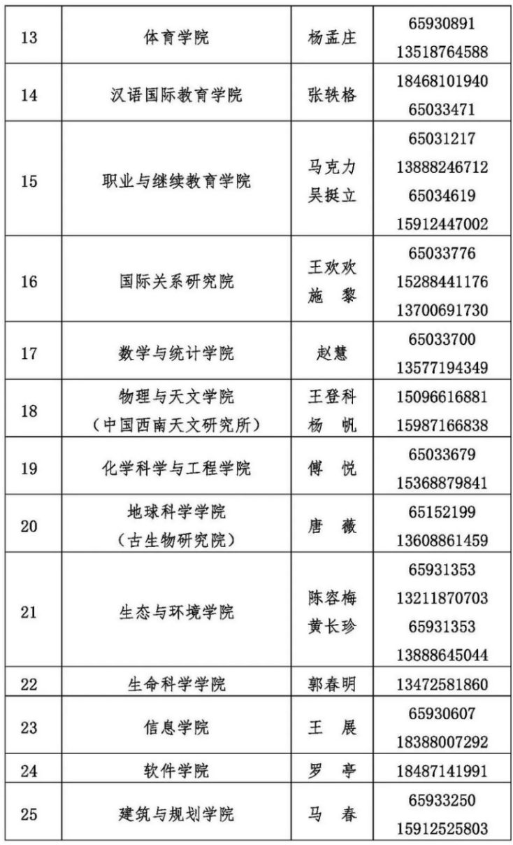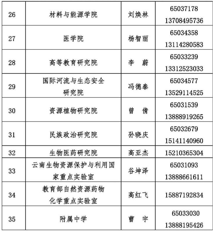 校友总会联系人:张雷 0871-65939601 或 0871-65033921