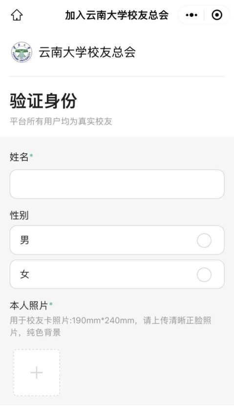 (2)无实体卡的校友:登录“云大校友”小程序,完善电子校友卡信息,审核通过后,刷电子校友卡免预约入校。