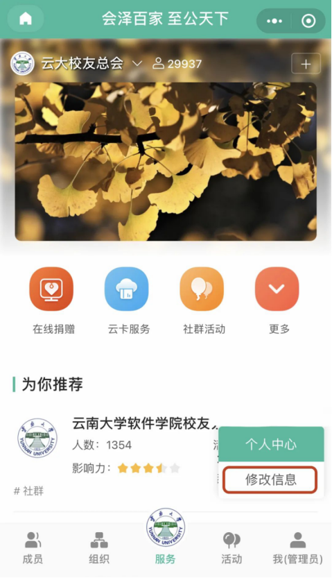 注册成为云大校友--allwincity万象城官方网站校友卡申领步骤