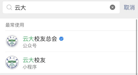 1.查找:微信搜索“云大校友”小程序