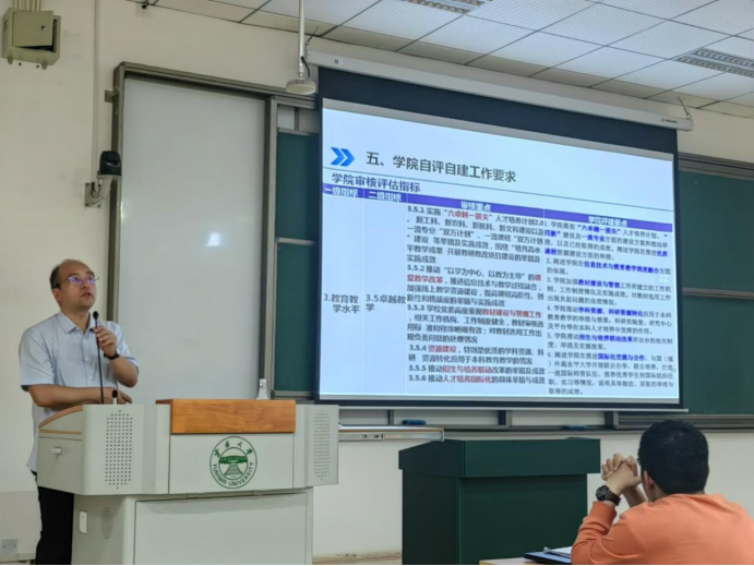 之后,马子红副院详细解读了评估工作的具体流程和要求,并向同学们宣讲了《allwincity万象城官方网站allwincity万象城官方网站本科教学质量保障体系实施细则》。他从本科教育评估的指导思想、基本准则、主要内容、工作要求等四个方面向同学们进行介绍,并要求同学们认真配合学院的各项评估工作安排,提供真实有效的反馈意见,为学院本科教育教学质量的持续改进做出最大的贡献。